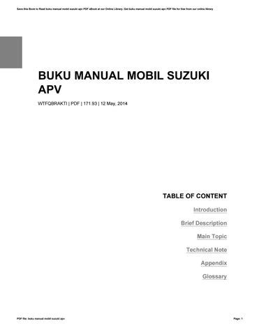 Manual Suzuki Apv Ebook Epub By Click Button. Manual Suzuki Apv Ebook it’s easy to recommend a new book category such as Novel, journal, comic, magazin, ect. You see it and you just know that the designer is also an author and understands the challenges involved with having a good book. You can easy klick for detailing book and you can read it online, even you can download it